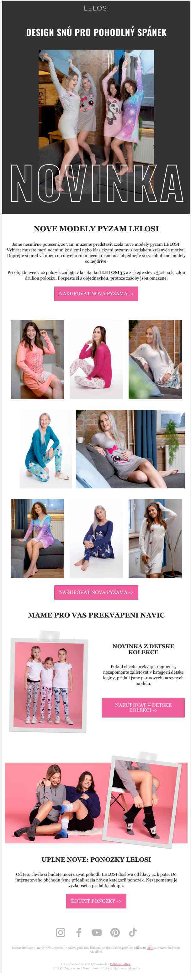 Nuslet je agregátor newsletterů českých i zahraničních e-shopů. Každý den zobrazujeme nové zajímavé nabídky a akční letáky z oblastí oblečení a obuv, sportu, elektroniky, potravin a nápojů, home & garden. Najdete u nás akční leták Lidl nebo Penny, ale také časově omezené slevové kupony těch nejlepších e-shopů u nás i v zahraničí. Inspirujte se módními trendy, interiérovým designem anebo novinkami ze světa elektroniky! Vše na jednom místě a přehledně na www.nuslet.cz