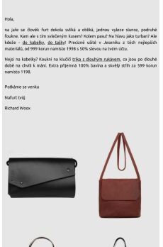 Vážený zákazníku, sleva -20 % a kabelka zdarma čekají...